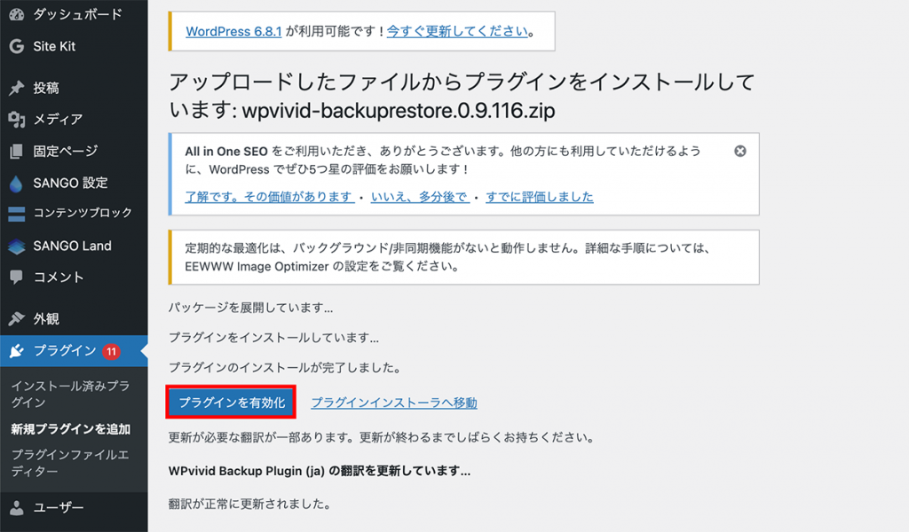 – WPvividプラグインが最新バージョンになっているか